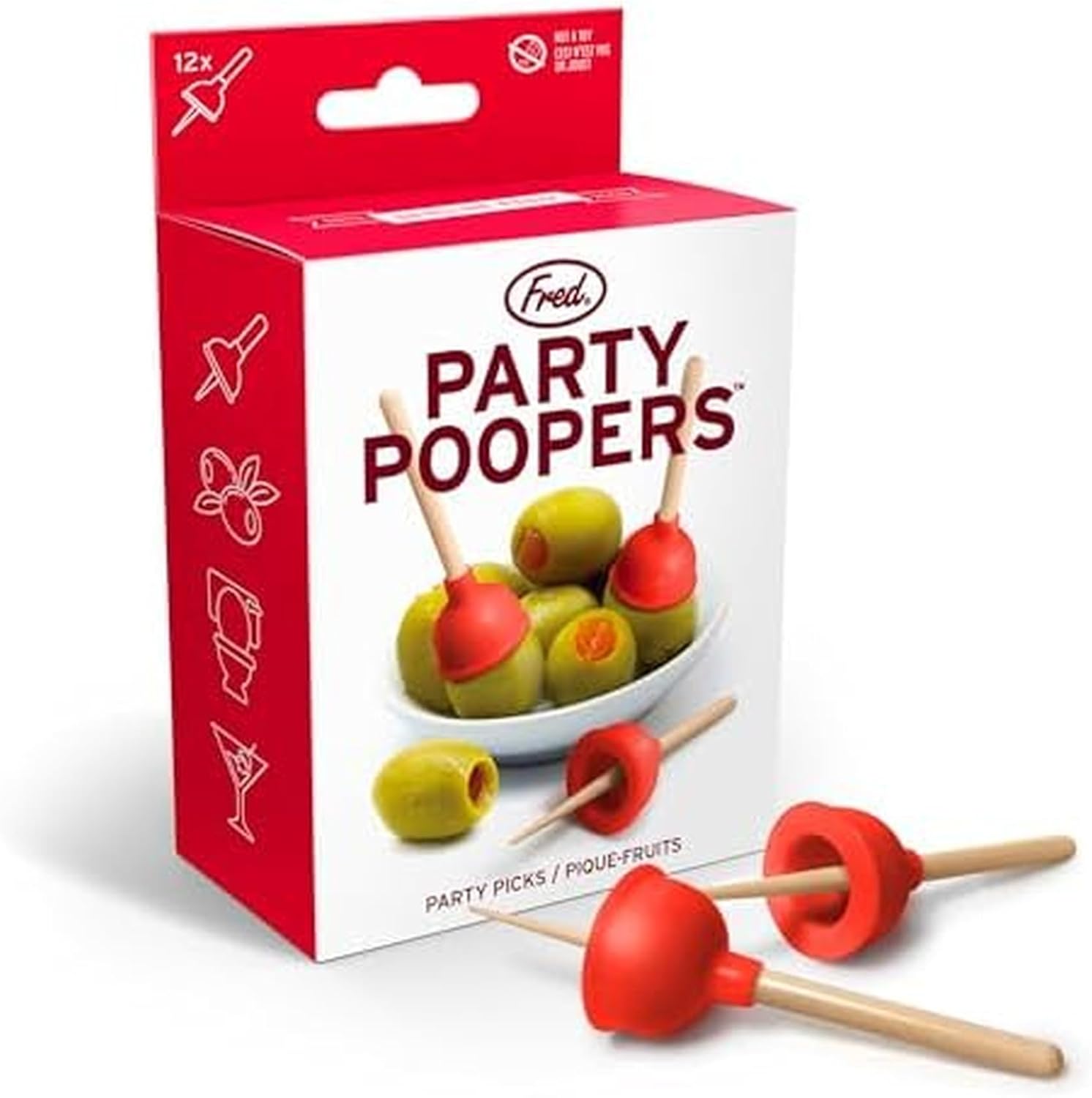 Bring some humor to your charcuterie board. There's so many snacks that these would look funny sticking out of. Olives are definitely a good start.