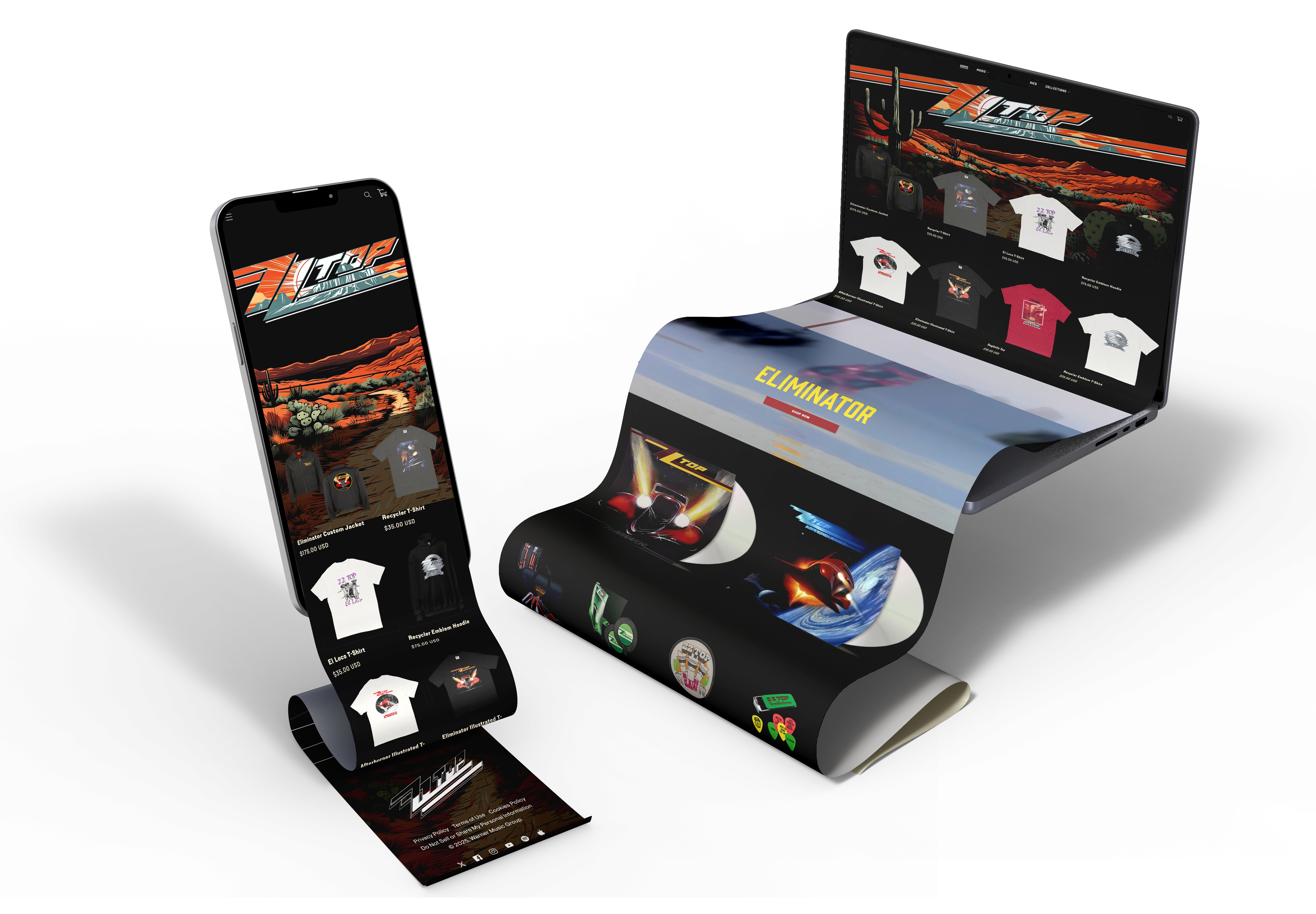 Create a distinct and on-brand webstore experience for ZZ Top, one of the most iconic rock bands in history, using a shared Shopify pattern library that still allowed for a unique, artist-specific look and feel. The site had to reflect the band's Texas grit and visual legacy while delivering a seamless ecommerce experience on mobile and desktop.